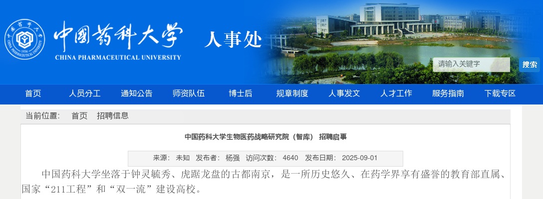 原标题:中国药科大学生物医药战略研究院(智库) 招聘启事