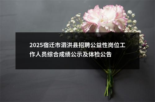 原标题:2025年泗洪县公开招聘公益性岗位工作人员综合成绩公示及体检公告