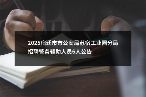 【2025宿迁市市公安局苏宿工业园分局招聘警务辅助人员6人公告 进入阅读模式】相关岗位:
