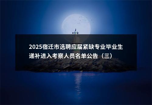原标题:江苏省宿迁市2025年选聘应届紧缺专业毕业生递补进入考察人员名单公告(三)