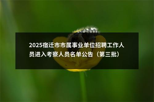 原标题:宿迁市2025年市属事业单位公开招聘工作人员进入考察人员名单公告(第三批)