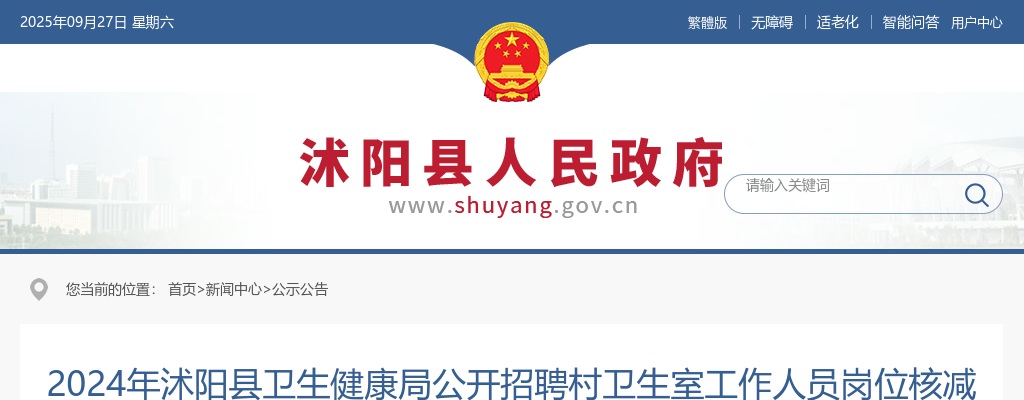 原标题:2024年沭阳县卫生健康局公开招聘村卫生室工作人员岗位核减(核销)公告