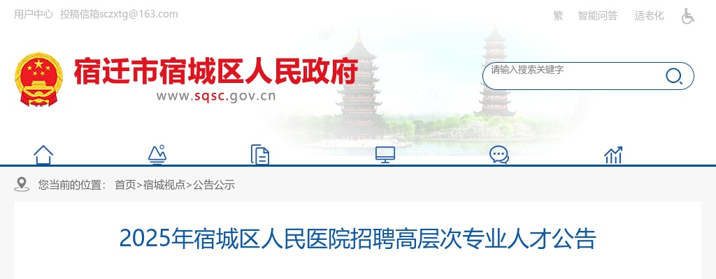 - 2025宿迁市宿城区人民医院招聘高层次专业人才29人公告 进入阅读模式